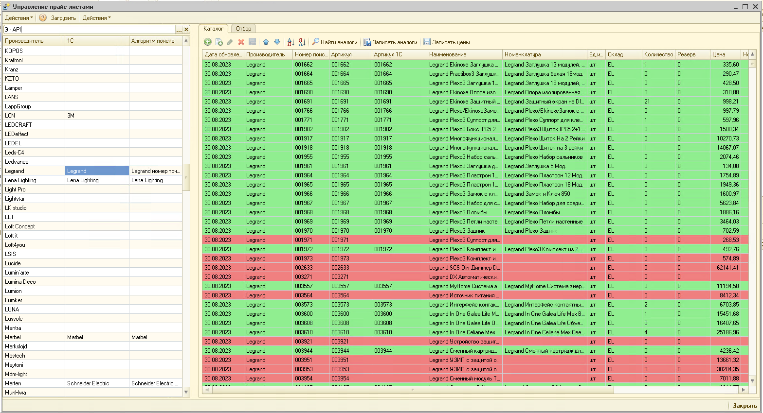 Возможности программы:- Чтение и загрузка данных прайс-листов в учетную систему 1С;