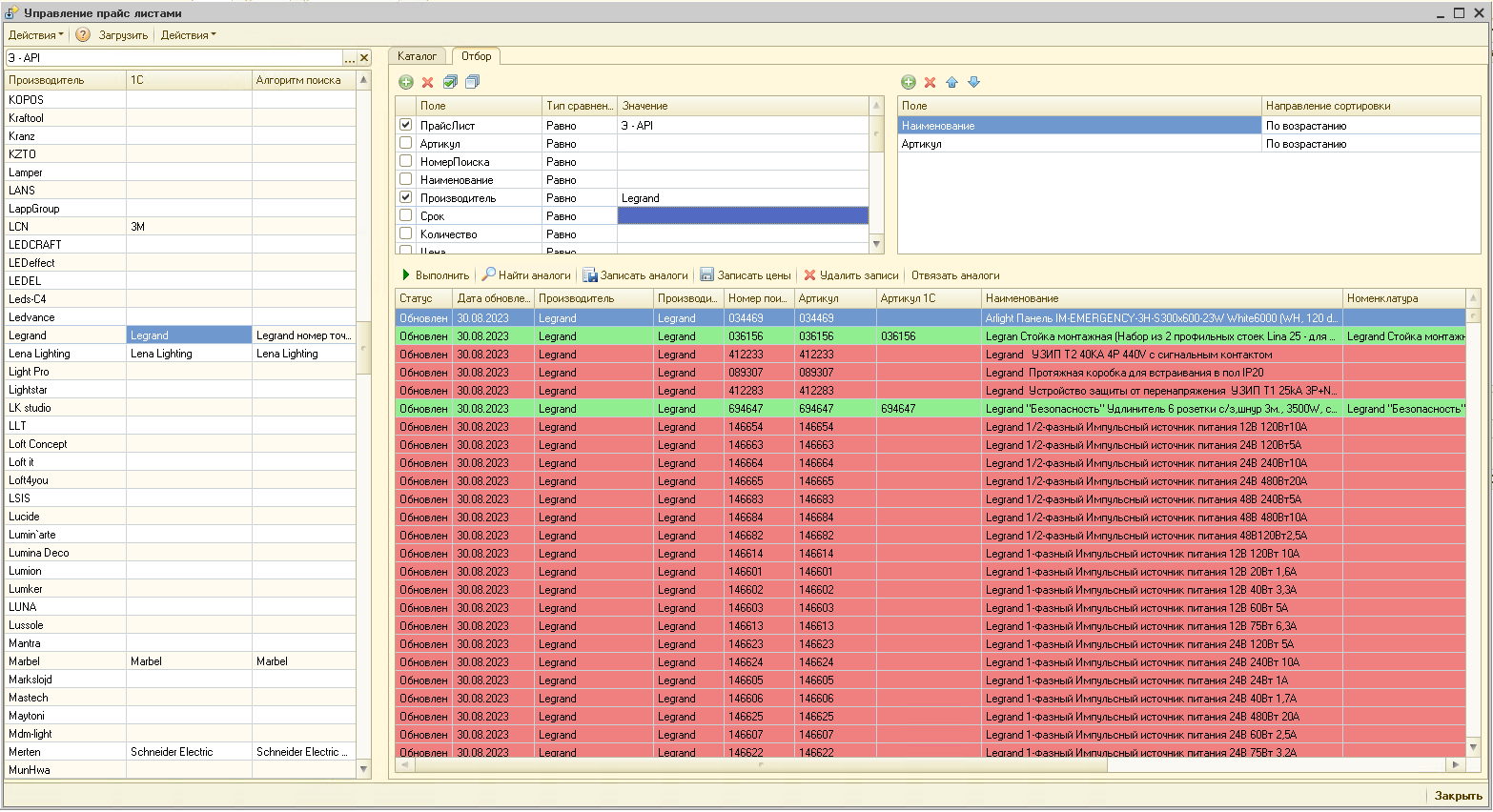 Программа "Управление прайс-листами КА 1.1." - программа для загрузки прайс-листов от поставщиков из файлов в формате xls, xlsx, csv. Загрузка данных по прайс-листам (ценам и остаткам) по API поставщиков Элевел, Тесли и Реал.